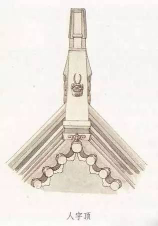 建筑的屋頂分為前后兩面坡,兩坡上端在屋脊處相交,形成建筑屋頂?shù)恼?。這種兩面坡屋頂從山墻立面看,其屋頂?shù)男蜗缶拖袷且粋€(gè)“人”字,所以把這種屋頂形式叫做人字頂。人字頂是一般住宅較常用的屋頂形式,硬山頂、懸山頂都屬于人字頂。