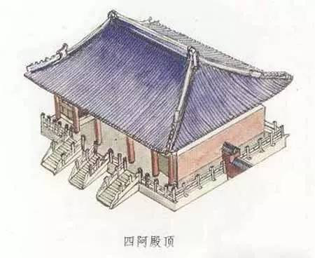 四阿殿頂也就是廡殿頂。四阿殿頂也是宋式叫法?!鞍ⅰ笔墙ㄖ蓓?shù)那?,“四阿”就是四面坡式的曲檐屋頂。廡殿頂共有五條脊、四面坡,所以叫做四阿殿頂。