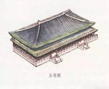 廡殿和歇山一樣是清式說(shuō)法,在此之前它又有五脊殿等名稱(chēng)。因?yàn)閺T殿式屋頂上共有五條脊,即,一條正脊和四條垂脊,所以稱(chēng)為五脊殿。