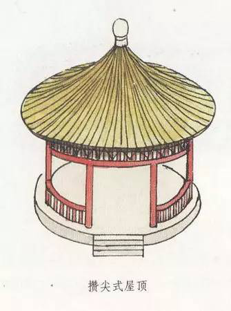 攢尖式屋頂沒(méi)有正脊,而只有垂脊,垂脊的多少根據(jù)實(shí)際建筑需要而定,一般雙數(shù)的居多,而單數(shù)的較少。如,有三條脊的、有四條脊的、有六條脊的、有八條脊的,分別稱(chēng)為三角攢尖頂、四角攢尖頂、六角攢尖頂、八角攢尖頂?shù)?。此外,還有一種圓形攢尖頂式,也就是沒(méi)有垂脊。