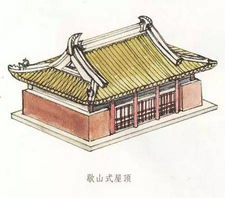 歇山是清式叫法,在清代之前它又有曹殿、漢殿、廈兩頭造等不同名稱(chēng)。歇山式屋頂在具體形式上又有最基本形式的單檐歇山頂,以及變化形式的二層、三層或多層屋頂?shù)闹亻苄巾?,還有最上面的屋頂可以不設(shè)正脊而形成卷棚式的卷棚式歇山頂?shù)榷喾N形式。