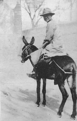 晏陽(yáng)初在定縣翟城村,毛驢是他固定的交通工具。資料圖片