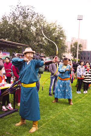 2016年10月22日,中央民族大學(xué)操場上熱鬧非凡。悠揚(yáng)的馬頭琴聲,飄香的奶酒,繽紛絢麗的蒙古族服飾,搏克、射箭等競技活動以及蒙古族特色產(chǎn)品展銷,把首都的一方土地變成了蒙古族傳統(tǒng)節(jié)慶活動的歡樂海洋。據(jù)統(tǒng)計(jì),當(dāng)天有兩萬多名在京蒙古族同胞及來自全國各地的各族群眾自發(fā)參與了這場民間活動。