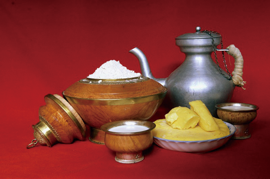 藏族地處高海拔地區(qū),在特殊的環(huán)境下形成了特殊的食材和飲食習俗。藏族的主要食品是青稞糌粑、牛羊肉和奶制品。這些都是藏區(qū)特有的食品。