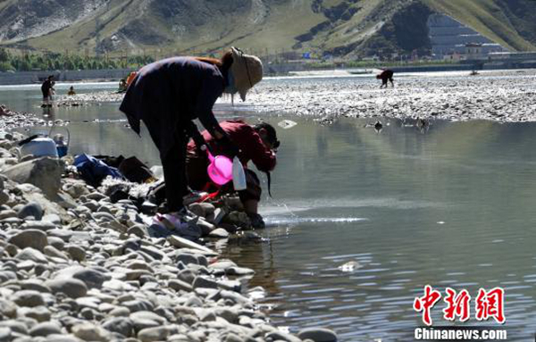 37歲的藏族青年旦增跟記者開玩笑,“自己看上去比實際年齡年輕,就是因為年年都來沐浴?!彼X得藏族民眾初秋過“沐浴節(jié)”,能夠提高抵抗力,與內(nèi)地所講的“春捂秋凍”本質(zhì)相同。旦增介紹說,不能在流水中過“沐浴節(jié)”的藏族民眾,會在月光照過的盆中凈水洗頭。