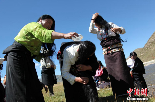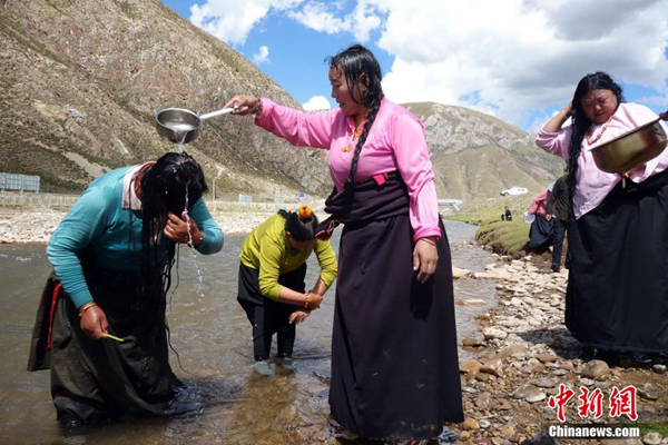 每年的夏末秋初,藏族同胞迎來一年一度的“沐浴節(jié)”?!般逶」?jié)”,藏語稱為“嘎瑪日吉”,為期7天。這項古老習俗已經(jīng)延續(xù)了800多年。西藏流傳民謠,“待到棄山星升起,清凈溫暖好沐浴?!币簿褪钦f,在“棄山星(金星)””照亮雪域高原的七天里,藏族民眾在星光照耀過的水流中沐浴,可祛除身體病痛、心理雜念,全年健康。