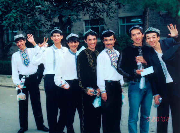 維吾爾族男性的服飾多為黑白搭配,線條粗獷,體現(xiàn)男性的穩(wěn)重與大氣。維吾爾族的服裝一般都比較寬松。男裝比較簡單,主要有亞克太克(長外衣)、托尼(長袍)、排西麥特(短襖)、尼木?。ㄉ弦拢煲滥丝耍ㄒr衣)、腰巾等。維吾爾族將外衣統(tǒng)稱為裕袢。這些衣服多用黑、白布料,藍(lán)、灰、白、黑等各種本色團(tuán)花綢緞料等制作。