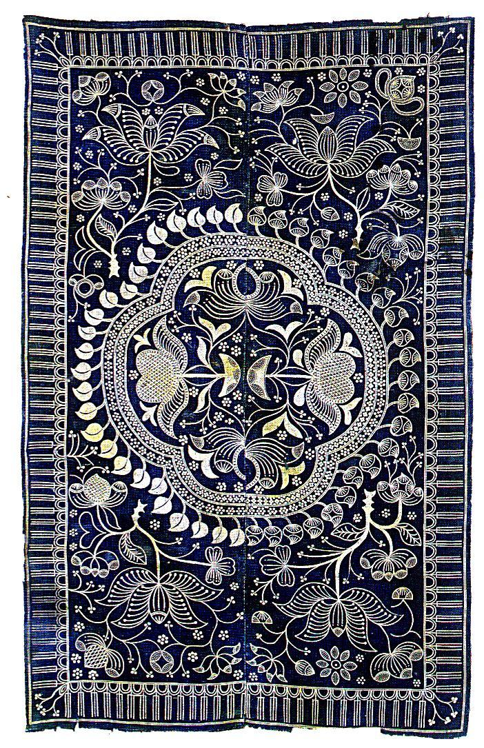 苗族蠟染歷史悠久,很多地方都流行有《蠟染歌》(古歌),敘述蠟染的起源。早在秦漢時(shí)代,苗族的先民就已經(jīng)掌握了蠟染技術(shù),據(jù)《貴州通志》記載:“用蠟繪花于布而染之,既去蠟,則花紋如繪”,這種蠟染布曾被稱為“闌干斑布”。宋代五溪地區(qū)的“點(diǎn)蠟幔”(蠟染)已很盛行。明、清時(shí)代,黔中一帶苗族也多用蠟染衣料。民國(guó)年間,蠟染盛行于湘西、貴州、云南、川南的大部分苗族中,而以貴州的丹寨、安順、郎岱(今六枝)、普定、惠水等地技藝最高。大多數(shù)地區(qū)都將蠟染成品作衣飾,湘西地區(qū)則用作床單、枕巾等。