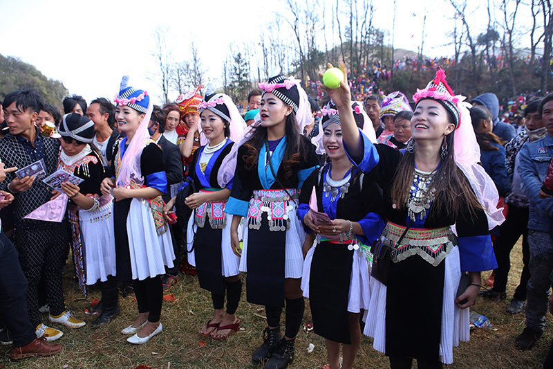 由于在歷史上經(jīng)歷長時間、大范圍的遷徙,苗族文化形成了較強的環(huán)境適應(yīng)能力和流動變遷特征。節(jié)日作為民族文化的凝集點,慶祝方式和形態(tài)也處于動態(tài)的演變和傳承之中。在大布紅的花山場,一個從老撾過來的苗族女子樂隊讓當(dāng)?shù)氐拿缱迦烁械胶闷妗f著同樣的西部苗語,卻穿著略顯不同的衣服。她們排成一行,教人們一來一往地扔繡包,一時間圍觀者無數(shù)。不消多久,女子樂隊手中的CD就在人群中銷售一空。