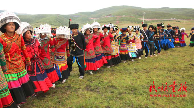 盛裝的彝族青年男女舞動起來
