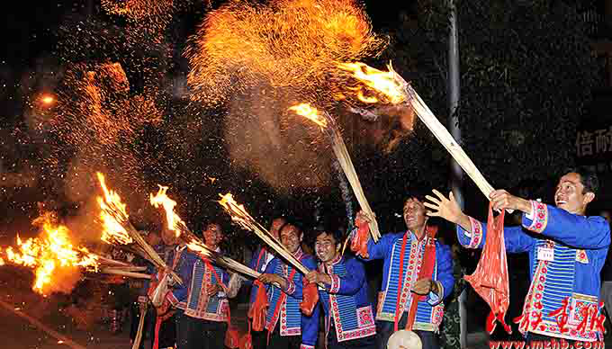 火把節(jié)是彝族傳統(tǒng)節(jié)日中最普遍、最隆重、最富有民族特色的節(jié)日,一般在農(nóng)歷六月二十四至二十六舉行,楚雄彝族火把節(jié)于2006年5月經(jīng)國務(wù)院批準(zhǔn)為第一批國家級非物質(zhì)文化遺產(chǎn)保護(hù)項目。節(jié)日內(nèi)容集民俗活動、經(jīng)貿(mào)活動、文體活動和社交活動于一體,像磁石一樣吸引著各族群眾,許多人就是通過參加火把節(jié)認(rèn)識了彝族,知道了楚雄彝族自治州的。節(jié)日期間,各族人民載歌載舞,?;鸢?、放焰火,火把節(jié)成了弘揚(yáng)彝族文化、促進(jìn)對外交流、開展經(jīng)貿(mào)活動和各族人民大團(tuán)結(jié)的盛會。