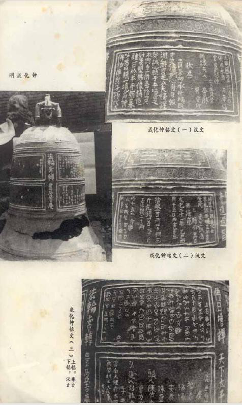1982年,貴州省大方縣文物工作者在大方縣城關小學內發(fā)現成化鐘。因鐘面彝漢文均注明此鐘鑄造于明成化二十一年(1485年),故稱之為“成化鐘”或“明成化鐘”。鐘面為彝漢兩種文字銘刻,彝文130字,是目前發(fā)現的唯一寫有紀年款識的彝文銘文。文字書寫嚴謹,布局整齊。