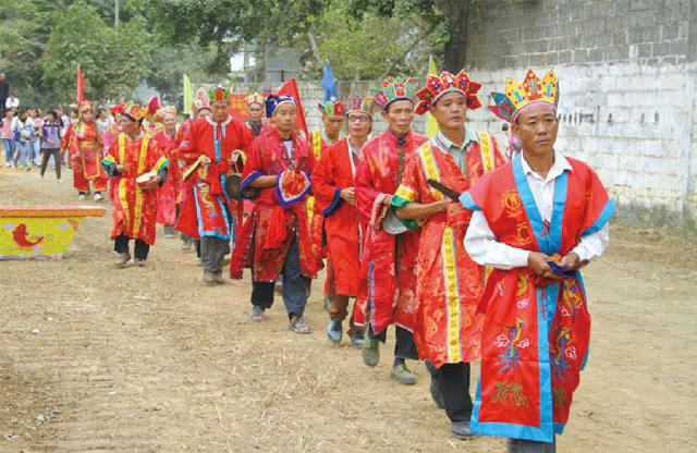 在酬謝自然之神后,由祭司念誦祭文,紀念民族英雄瓦氏夫人,頌揚瓦氏夫人率領將士打擊倭寇的英雄事跡,傳授民族歷史知識,宣揚保衛(wèi)家園、謀求平安的民族精神。