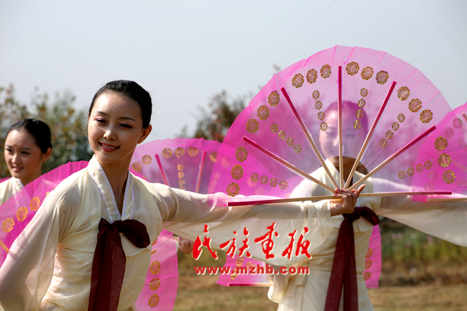 十月的延邊碧空如洗,大地歡歌;十月的山村層林盡染,稻谷飄香。這是農(nóng)民們最為向往的季節(jié),耀眼的陽光給剛剛收獲過的土地鑲上了一層迷人的金邊,累累碩果被婦女們輕快地端上了餐桌。在寬闊的體育場(chǎng)上,彩球升騰、人聲鼎沸,一場(chǎng)盛大的慶?;顒?dòng)—農(nóng)樂舞表演即將拉開序幕……