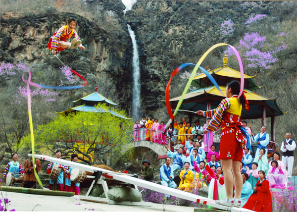 朝鮮族人民喜歡運(yùn)動(dòng),愛好體育,在長(zhǎng)期的勞動(dòng)、生活中創(chuàng)造出了為大家喜聞樂見的體育項(xiàng)目。摔跤、跳板、拔河、蕩秋千都是其中的代表。