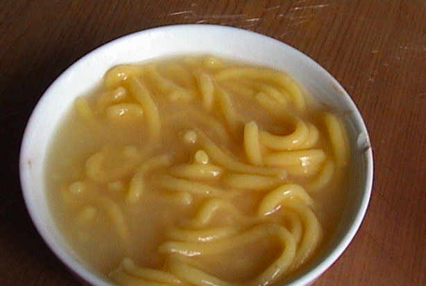在夏季,滿族同胞喜食“酸湯子”,其制法是:用玉米發(fā)酵面團(tuán)制成面條或面片,直接甩入湯鍋中制成。操作步驟是將玉米浸泡磨成水面,用布濾去渣滓,細(xì)面入缸發(fā)酵至微酸,然后從手指上戴的漏斗形湯套中擠出長(zhǎng)條,下沸水鍋中稍煮,再盛入碗內(nèi)。也可將發(fā)酵后的面團(tuán)加糖攪成糊狀,用勺舀從鍋沿自然流入鍋中間,成牛舌狀,也稱牛舌餑餑。食用時(shí)略帶酸味,味美可口。
