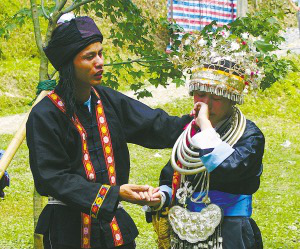 幾個(gè)月后,女方會(huì)用籃子提來可口的食物,與男方共享,并開始送女紅等信物。很自然地,玩伴心中就涌起“人圖人”、“人謀人”的念頭,玩山隨之進(jìn)入最激動(dòng)人心的成雙階段。