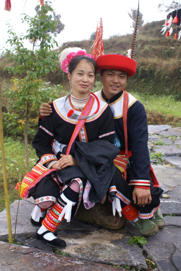 身穿瑤族傳統(tǒng)服飾的恩愛夫妻(劉軍攝)