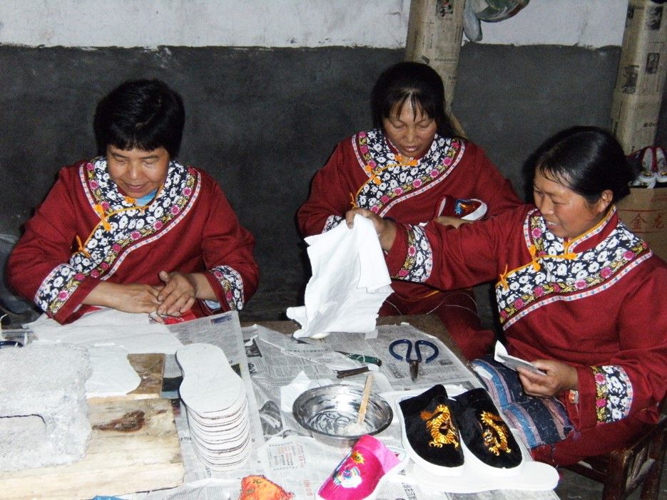 恩施土家族苗族自治州咸豐縣高樂山鎮(zhèn)官壩村土家人做繡花鞋  老鐵供圖