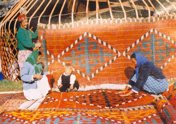 與此同時,民間藝術(shù)是滿載著人民情感的載體,也是表達情意的信物。手工制作中的一針一線都融入了濃濃的深情和深深的愛意。哈薩克族民間藝術(shù)還有一個重要功能就是美化和裝飾。各類具有哈薩克民族特色的藝術(shù)品主要集中陳設(shè)在氈房中,氈房不僅是哈薩克族家庭生活的主要場所,也是人們賴以生存的空間,住所內(nèi)裝飾和陳設(shè)的各類民族藝術(shù)作品一方面充分展現(xiàn)了哈薩克族民間生活藝術(shù)的不同品類,另一方面也體現(xiàn)了哈薩克族人民生活的各個方面??偠灾?,哈薩克族民間藝術(shù)體現(xiàn)了哈薩克族博大精深的民族文化,應(yīng)使之得以傳承與發(fā)揚。