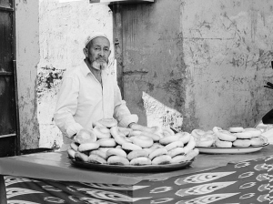 維吾爾老人很會(huì)打馕,這又是小城的另一項(xiàng)營(yíng)生。原先住在農(nóng)村,大家都是用自己的馕坑來(lái)打馕,打一次夠一個(gè)星期食用。進(jìn)了城,馕坑沒(méi)了,主婦們用烤箱烤了幾次,總覺(jué)得少了那么一點(diǎn)味道。于是,小城里出現(xiàn)了幾個(gè)打馕人,在馕坑里打好馕,每日售賣。