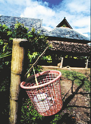 村長巖化告訴我,村里巖約的老母親死了。門口掛的東西叫“喃送派”,是用來驅(qū)趕沾在身上的鬼氣的。