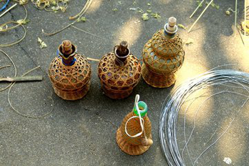 傣族竹編歷史悠久,制作精美,品種豐富,它與傣族人家生活息息相關,是了解傣族文化不能缺少的一部分。對于傣族竹編來講,以編織工藝不同,可以把傣族竹編分為薄篾層編織出平面圖形的平面竹編;用橫截面為矩形的竹絲編織立體造型的立體竹編;將平面竹編和立體竹編編織工藝糅合在一起,編制成既有平面質感又有立體形狀的混合竹編。傣族竹編是藝術創(chuàng)作和藝術再創(chuàng)作,竹編工藝品可分為粗絲工藝品和細絲工藝品。粗絲竹編工藝品主要有茶杯、糖缸、飯盒、檳榔盒、茶葉罐等,細絲竹編工藝品主要有竹包手袋、挎包和帽子等,它們集實用和觀賞性于一體。例如傣族的“芭蘿”,“芭蘿”是傣族,是一種掛在腰間的竹簍?!鞍盘}”編織精巧,美觀實用,不僅是生產(chǎn)、生活用具,還是精致的裝飾品,還是傣族青年表達愛情的傳遞物。