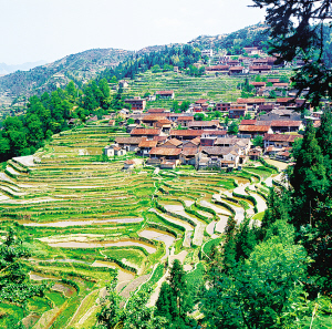 畬族主要聚居在浙江省和福建省山區(qū)的丘陵、山谷盆地。浙江景寧是我國(guó)唯一的畬族自治縣。畬族聚居的村寨都在離縣城不遠(yuǎn)的大山里,大都選擇避風(fēng)向陽(yáng)、有水源的地方建房成村。在村寨四周栽種松樹(shù)、楓樹(shù)、榅樹(shù)、苦櫧,房前屋后種毛竹、果樹(shù)。村口有樹(shù)能擋風(fēng),屋后種樹(shù)能蓄水,空氣也格外新鮮,因此,便有了“造成風(fēng)水畫(huà)成龍”的畬族諺語(yǔ)。
