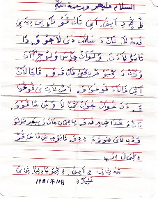 “小經(jīng)”作為一種拼寫文字形成之后,在經(jīng)堂中曾出現(xiàn)過“阿文小經(jīng)文字對照表”,不僅經(jīng)堂學員用“小經(jīng)”來注釋經(jīng)文或作筆記,一些阿訇也以之翻譯某些經(jīng)文或進行著述。在部分回族穆斯林中,它也曾被用作寫書信、記日記或記事的應(yīng)用文字。因有些漢語語詞極難拼準,故行文中常夾雜一些阿拉伯文或波斯文的原詞,也有夾雜個別漢字。