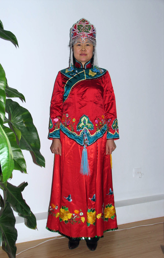 剛出嫁的女子的服飾要比少女的服飾更加艷麗,并且梳理的發(fā)型也會(huì)有所差異,媳婦梳的是“盤龍髻”,額前有“劉?!?,腦后有“燕尾”,頭頂上烏發(fā)蓬起,盤成髻形,日常生活中將辮梳成雙辮或兩“抓髻”,合起成為一個(gè)大“疙瘩髻”。頭發(fā)抹頭油,沒有頭油的,用榆樹皮泡的水也粘稠光亮。面部可以涂粉,口可以涂口紅,可以染指甲等。頭部髻上插著金簪,腕上佩帶金(銀、玉)手鐲。錫伯族已婚婦女一般都會(huì)穿戴耳環(huán)、手鐲、戒指等裝飾品。此外,錫伯人喜愛在褲子小腿處扎系黑色的綁腿帶子。綁腿帶視年齡也會(huì)有所不同,未出嫁的女子一般扎系紅色、粉紅色腿帶,而在舉行葬禮儀式時(shí)扎系白色的綁腿帶子。
