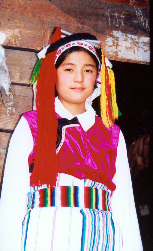 蘭坪型服飾則受當(dāng)?shù)匕鬃搴蜐h商的影響較深?!暗刂髅薄笔降膱A頂小帽、對襟長衫和馬褂等裝束,向我們展示了處在礦產(chǎn)資源開發(fā)區(qū)域的民族群屬,其傳統(tǒng)著裝也因頻繁接觸外界文化而受到影響,并有所改變。