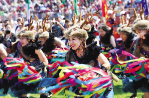 開幕式上的赫哲族傳統(tǒng)舞蹈。
