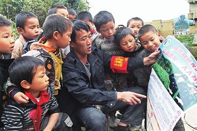 生態(tài)護林員向孩子宣傳森林防火知識