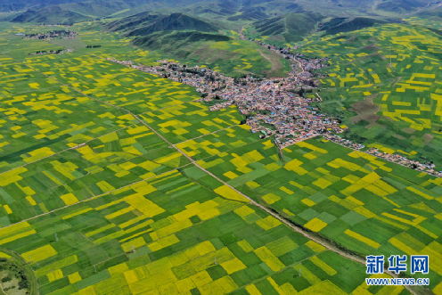 航拍門源縣油菜花海。新華網(wǎng) 宋忠勇 攝