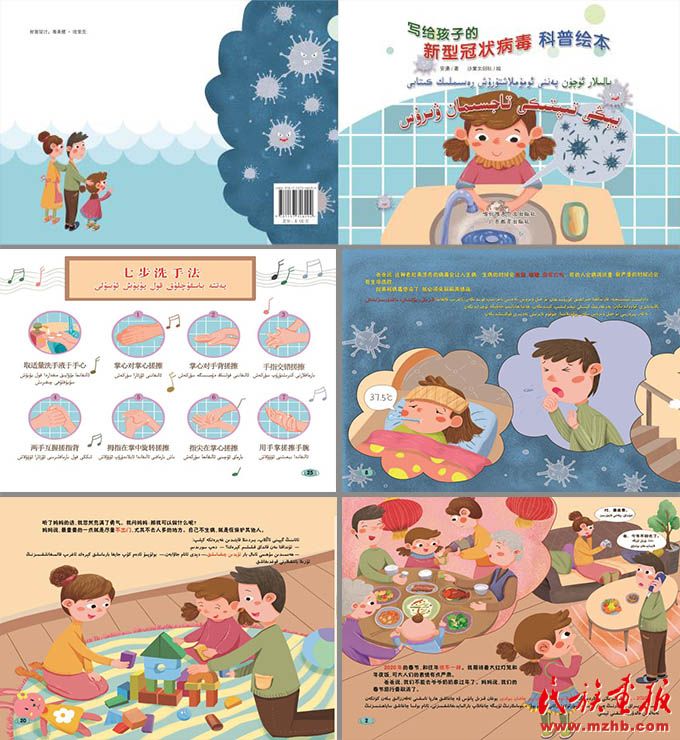 喀什維吾爾文出版社聯(lián)合出版的《寫給孩子的新型冠狀病毒科普繪本》(漢維對(duì)照版、電子版)。