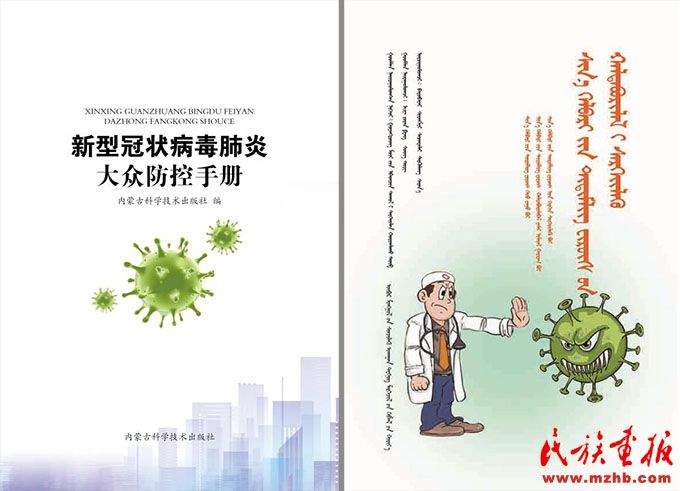 內(nèi)蒙古科學(xué)技術(shù)出版社出版的《新型冠狀病毒肺炎大眾防控手冊(cè)》(蒙古文版、電子版)。