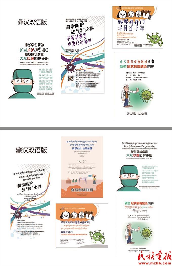 四川民族出版社出版的《新型冠狀病毒感染防護(hù)》(藏漢雙語(yǔ)、彝漢雙語(yǔ))紙質(zhì)圖書(shū)。