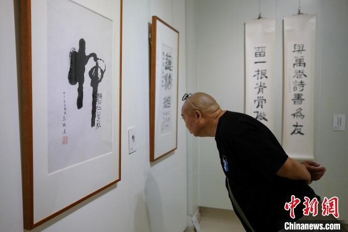 圖為觀眾參觀書法展?!『闻罾?攝