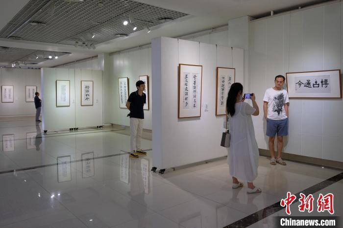 圖為觀眾在書法展上拍照留念。 何蓬磊 攝