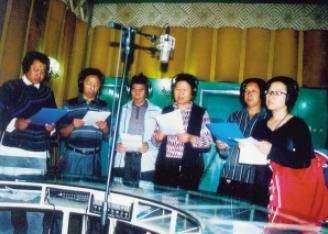 涼山州民族電影譯制中心演員在進行彝語數(shù)字電影配音