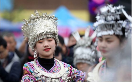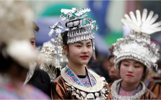 苗族頭飾主要是以銀飾為主。苗族女孩從學(xué)會走路開始,父母就會給女兒制作一套苗族民族盛裝和頭飾,苗族女孩一般6歲左右就可以參加每年的民族盛會,并且從小學(xué)習(xí)化妝技術(shù)。苗族的盛會主要集中在春節(jié)后,也叫坡會,就是山坡上的聚會,這一天苗族姑娘就會穿上珍藏已久的民族盛裝,戴上頭飾,把自己打扮的漂漂亮亮,參加蘆笙踩堂舞,展示自己的美麗一面。
