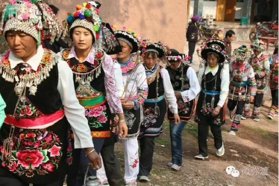 散居于哀牢山上段的彌渡牛街彝族鄉(xiāng)彝族分“迷撒支”和“羅羅潑支”兩個(gè)支系,均為來(lái)自巍山、南澗的南詔后裔?!懊匀鲋А敝饕植加谀菊?、榮華兩個(gè)村委會(huì),而“羅羅潑支”各村委會(huì)均有零星分布。彝族服飾,如果按地域來(lái)劃分,可以分為涼山、烏蒙、紅河三大類(lèi),牛街彝族服飾屬于“烏蒙”類(lèi)。