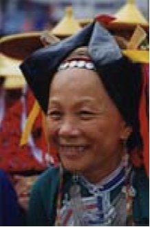 惠東女服飾文化源遠(yuǎn)流長,其形成、發(fā)展過程一直是中外人類學(xué)、民俗學(xué)專家關(guān)注的課題。其來源有種種傳說,目前尚無定論。據(jù)史料記載,清代中后期,惠東婦女上穿黑色或紫色長袖挖襟衫,下穿黑色大折褲。衣長、胸、腰背寬闊,下沿稍呈弧形外展,與清代流行的“大夫衫”(長式挖襟衫)類似。不同的是袖口偏窄,袖子接長,故名“接袖衫”又名“卷袖衫”接袖的用意十分有趣,為的是讓新娘入洞房時(shí)提起長袖以遮掩一臉羞紅;過了3日,才在長袖一半處翻卷逢住固定。到了清未“接袖衫”各部分略為收縮,衣沿弧度加長,臂圍寬度加闊并向外彎展,腰圍處的中式紐攀減少,兩個(gè)連在一起,袖口繞藍(lán)布邊。領(lǐng)圍上刺繡圖案由簡變繁,領(lǐng)根下方形色布改為三角形。胸、背中線兩側(cè)綴做兩塊方形黑色、深褐色綢布,其四邊各鑲接一塊三色形色布,改稱“綴做衫”。褲子為“大折褲”又名“大筒褲”,俗稱“漢裝褲”。褲一般用黑色布,也有用藍(lán)色的。褲腳寬約1.2尺,褲頭約2尺,縫一道5寸的藍(lán)色布邊。其樣式從清代中后期至今沒有多大變化,惟質(zhì)料由舊時(shí)用粗布,今天改為通用黑綢布。惠東女服飾,歷來重視腰以上部分,特別以頭飾最為突出,花樣繁多,不同場合、不同年齡的頭飾有明顯區(qū)別。