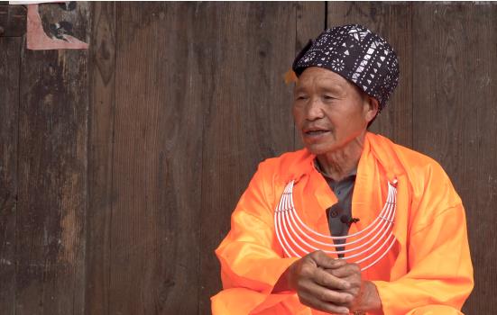 另一種是普通男子服飾,為藍色斜襟長衫,頭飾以黑色布帶圍繞成的帽子,圍裹較為麻煩,常常需要旁人幫助。在帽子左側(cè)還會夾有一塊彩色的帕子。