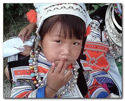 圖為革家姑娘在接請(qǐng)姑媽過(guò)“十四”前,母親總要為女兒作一番打扮