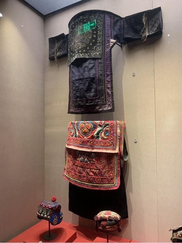 嬰孩的背扇和童帽(許覬佳攝于貴州省民族博物館)