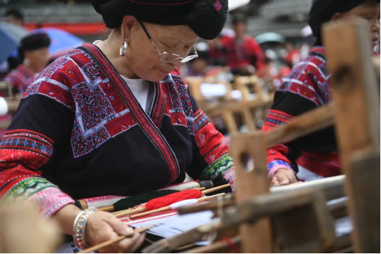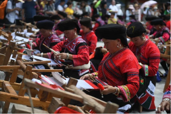 2014年,龍勝瑤族服飾(紅瑤服飾)以其精湛的手工藝和文化底蘊入選國家級非物質(zhì)文化遺產(chǎn)代表性項目名錄擴展項目名錄。如今的“曬衣節(jié)”已不僅是紅瑤的傳統(tǒng)佳節(jié),“農(nóng)歷六月六,廣西龍脊看紅衣”等曬衣節(jié)系列活動已成為桂林山水游的一張名片,讓各地游客充分感受多姿多彩的民族風(fēng)情。紅瑤同胞們用自己獨特的方式,為中國共產(chǎn)黨成立100周年獻(xiàn)上自己的祝福。