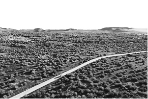 回看村史,根登帶領(lǐng)牧民人工種草、沙漠造林的場景似乎歷歷在目,治沙確實(shí)太難了,常常是事倍功半,一場沙塵暴把新栽的灌木連根拔走。后來他們也漸漸摸出門道,從沙丘的低處由下往上治理,形成圍攻之勢,這樣治沙成果就保住了。到20世紀(jì)60年代中期,烏蘭敖都村莊附近基本被固沙灌木覆蓋,牲畜飼養(yǎng)量也由最初入社時(shí)的200多頭(只)發(fā)展到5000多頭(只)。除栽種固沙灌木外,烏蘭敖都還栽植白楊樹、棗樹、葡萄樹和蘋果樹,搞多種經(jīng)營。后來又逐步引進(jìn)飛播、網(wǎng)格治沙等先進(jìn)技術(shù),綠色發(fā)展的步伐逐年提速。