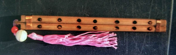 羌笛是一種吹管樂器,歷史悠久。羌笛至今已有兩千余年歷史。據(jù)史載,西漢前,羌笛面上有四孔,公元一世紀(jì)由京房加一高音按孔,為五孔。東漢馬融在《長笛賦》就曾有“近世雙笛從羌起”的記述,唐代亦有“羌笛何須怨楊柳”的名句。發(fā)展到近代羌笛已成六孔。2006年5月“羌笛演奏及制作技藝”被列入《第一批國家級非物質(zhì)文化遺產(chǎn)目錄》。羌笛在羌語中稱為“其篥”“士布里”或是“幫”,是一種古老的民間豎吹樂器。它由兩根長約15—20厘米,直徑1厘米左右,筒孔大小一致的竹管并在一起,用絲線纏繞,管頭插著竹簧。管身竹制或骨制,由發(fā)音簧哨和方筒形管體組成。兩管長短、孔距和音高相同。管上設(shè)五個或六個按孔。演奏時,雙手持笛,將簧哨含入口內(nèi),用特殊的“鼓腮換氣法”吹奏,指法與笛相同。制作羌笛一般選用箭竹,并根據(jù)筒管的長短、厚薄及筒管大小測定音準(zhǔn),孔距必須精確相等,否則音準(zhǔn)不一。