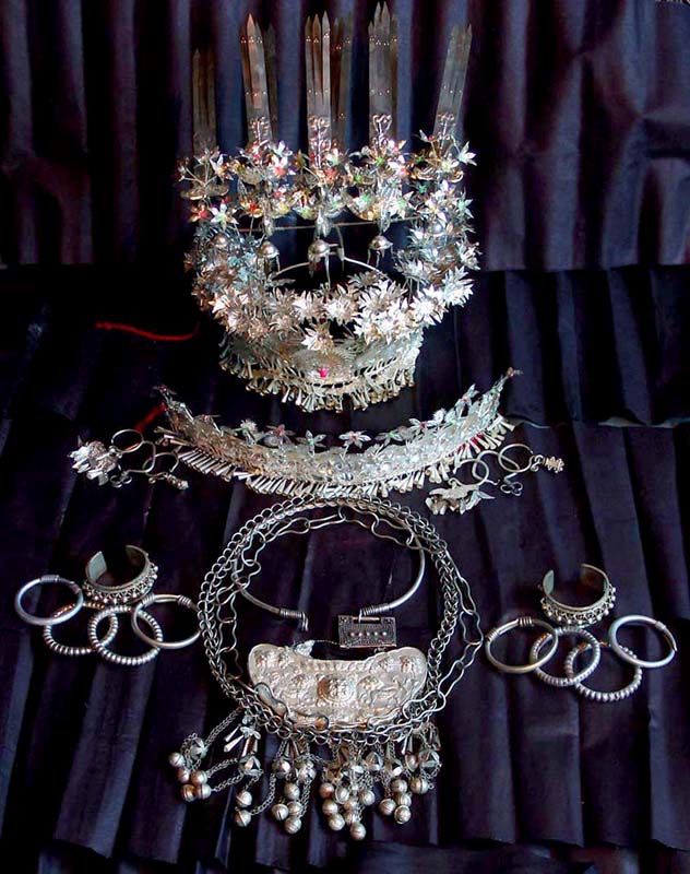 據(jù)苗族古歌傳唱,早期的苗族銀飾以胸飾、手飾為主,其中胸飾由冷兵器時代的護心鏡演變而來,手鐲最初是巫術中的兒童辟邪之物。后來,由于不同苗族支系文化的相互滲透,用于服飾裝扮的內容和形式逐漸豐富,遂演變成現(xiàn)在豐富多彩的苗族銀飾。